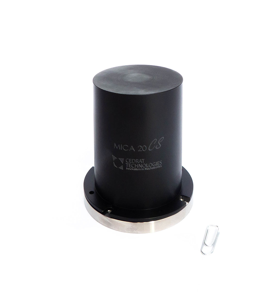 The MICA20CS-PM offers a highly compact solution for precision vibration control. Its proof mass design enables efficient dynamic force generation, ideal for small-scale damping and excitation applications. Equipped with a frictionless flexure bearing, it ensures maintenance-free reliability and integrates with CTEC’s MCSA480 amplifier and other standard drivers.