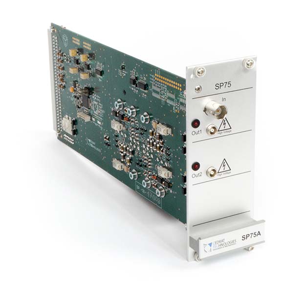 The SP75 is a bipolar (-20 / +150 V) switching power amplifier for driving low voltage piezoelectric actuators, controlled with a TTL signal. It is particularly adapted for driving shutters like the FPS.